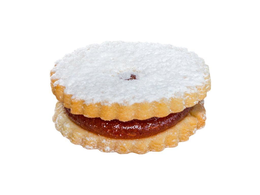 | Pšeničná múka, voda, cukor, jablková a ovocná dreň (SO2), nestužený a stužený rastlinný tuk (palmový), rastlinný olej (repkový), vajcia, dextróza, zemiakový škrob, pšeničný škrob, regulátor kyslosti: E330; želirujúca látka: E440, koncentrát z bazy čiernej, arómy, emulgátor: E471, E322; jódovaná soľ, konzervačná látka: E200, E202. |